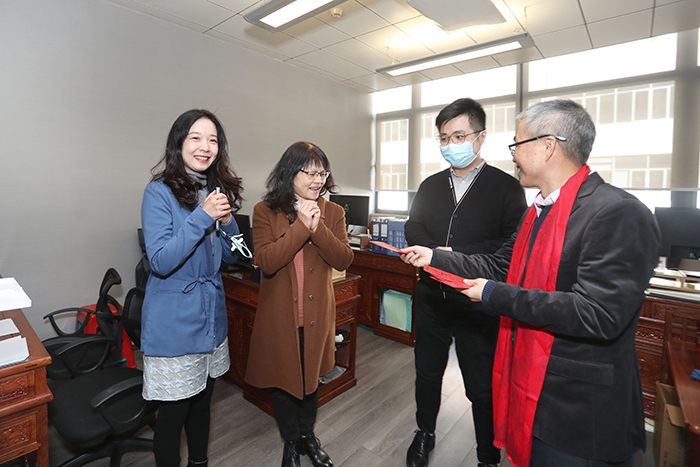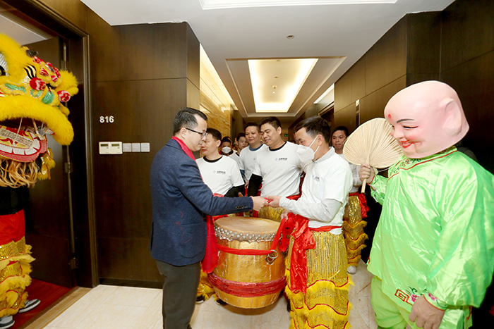 9點18分,伴隨著震耳的鞭炮聲和歡快的寶鷹醒獅隊鑼鼓聲,寶鷹股份副董事長兼總經理古少波,寶鷹股份常務副總經理、寶鷹建設董事長薛依東攜公司高管團隊向總部全體員工拜年,派發開工利是。懷著對未來的美好憧憬與期待,全體寶鷹人必將凝聚“一家人一條心一起干”的磅薄力量,擺出“開局就開戰、起步就起跑”的姿態,同心同行啟航新征程。