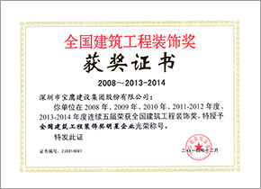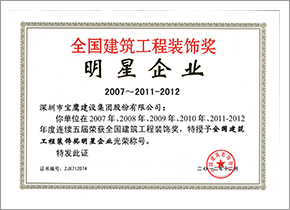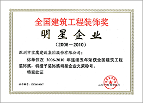 全國建筑工程裝飾獎明星企業(yè)(連續(xù)多年);