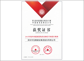 中國建筑裝飾杰出酒店設(shè)計機構(gòu)(連續(xù)多年);